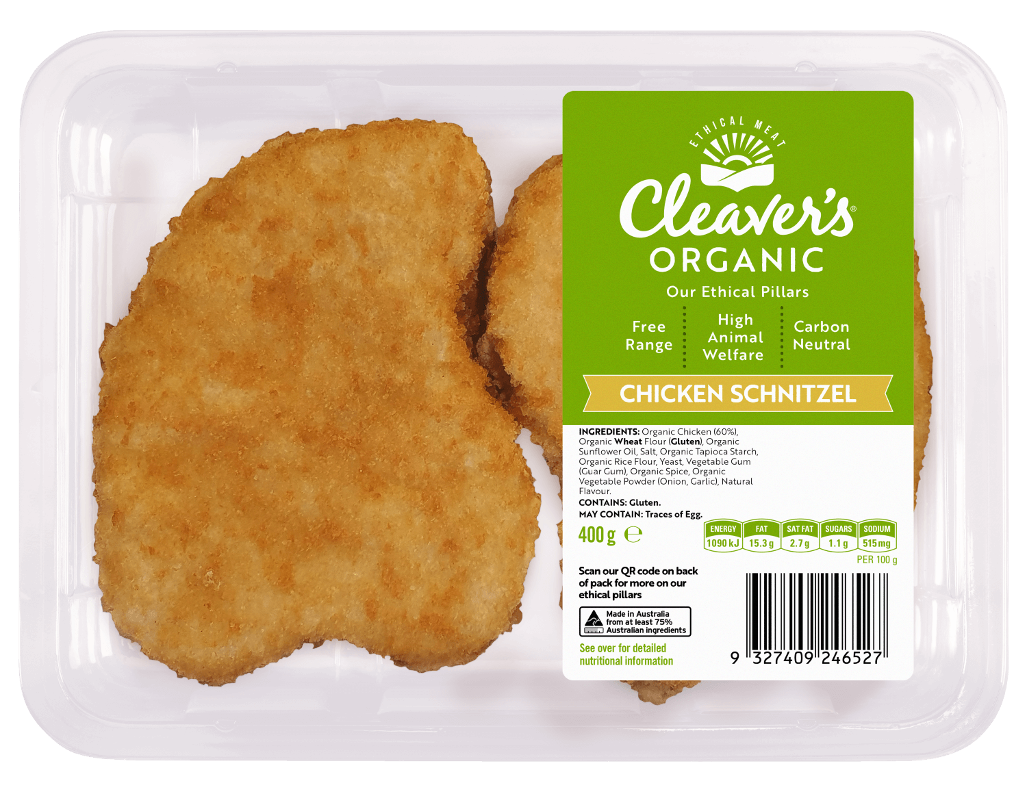 Cleaver's Organic Chicken Schnitzel 400g (4 per pack)